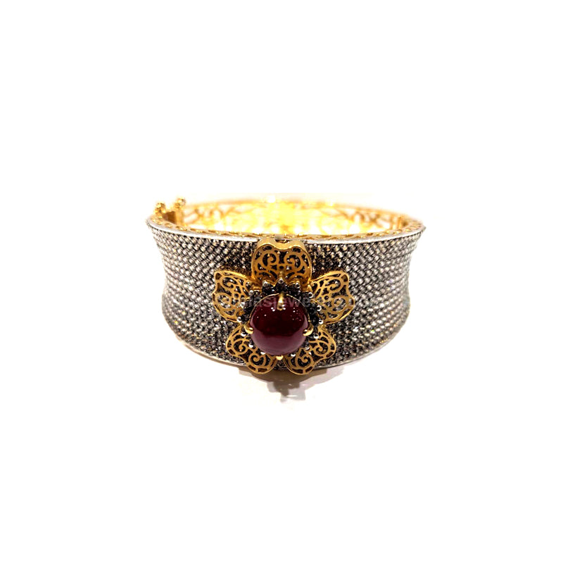 | The Pure Radiant Gold Kara is a luxurious wristpiece with elegance and glamour. This stunning kara blends gold's warmth with ruby, sapphire, and zircon to create a luxurious item. Each gemstone is meticulously set in the Pure Radiant Gold Kara to accentuate its colour and brilliance. Golden settings accentuate gemstone brightness, producing a perfect symphony of colours and elegance. Elegant and adaptable, this kara is a stunning complement for any event. Wearing the Pure Radiant Gold Kara invites you to enjoy gemstones and gold. Allow this kara to adorn your wrist and lend a touch of glamour to your every move. In the Pure Radiant Gold Kara, sophistication and gemstone kaleidoscope blend well. |