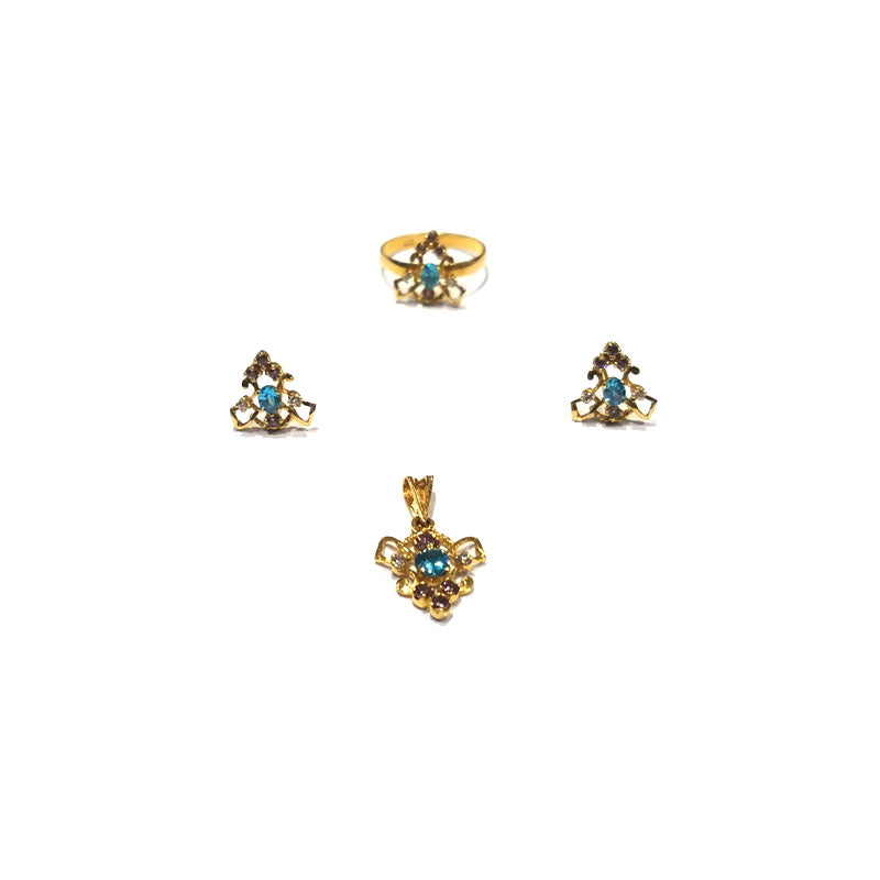 | The Falsa Zircon Fusion Gold Locket Set is a stunning combination of falsa stones, zircon, and aquamarine in gold. This luxurious locket set exudes a fusion of beauty and luxury. Each falsa, zircon, and aquamarine stone in the Falsa Zircon Fusion Gold Locket Set is precisely placed to create a stunning dance of colours on the golden canvas. The intricate pattern captures and reflects light, producing a beautiful colour and luxury mix. Its adaptable beauty makes this combination a treasured and eye-catching addition for any occasion. The Falsa Zircon Fusion, Gold Locket Set, invites you to enjoy gemstones and gold. Allow this set to hold your essential memories, giving brilliant charm and relaxing shine to your every action. The Falsa Zircon Fusion Gold Locket Set pairs sophistication with gold, falsa, zircon, and aquamarine stones in a glamorous symphony. |
