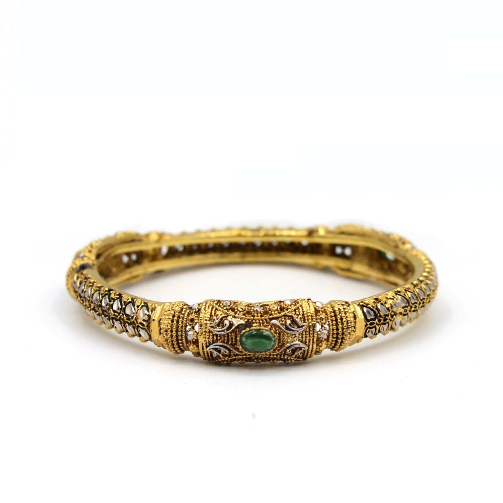 | The Emerald Silver Kara embodies elegance and nature's charm. This elegant kara is meticulously crafted and studded with emerald stones. The bright green emeralds are expertly placed in sterling silver, blending colour and metal. With each emerald shining brightly, the kara is a masterpiece of craftsmanship. The lush green tones symbolise life and rejuvenation, making this piece suitable for formal and casual use. The Emerald Silver Kara adds sophistication and a natural touch to your jewellery collection, worn alone or with other silver accessories. Enhanced by sterling silver, emeralds add timeless elegance. |