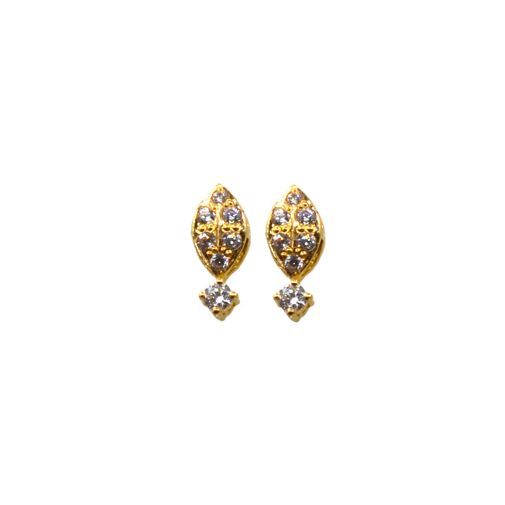 | Refined splendour and sophistication shine in the Sparkle Gold Earring. This gold earring has a stunning display of glittering white zircon stones that dance in the light. The Sparkle Gold Earring has carefully placed white zircon stones to maximise their sparkle. The pattern conveys classic elegance and sophisticated attractiveness. The Sparkle Gold Earring sparkles like a waterfall of stars, with each zircon stone collecting and reflecting light. The earring elegantly transitions day to night, bringing glamour to any occasion. The Sparkle Gold Earring amplifies your natural glow with its bright design and white zircon stones. This stunning accessory adds glitter and shine to your outfit. |
