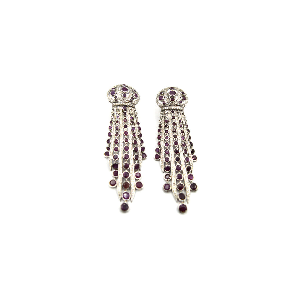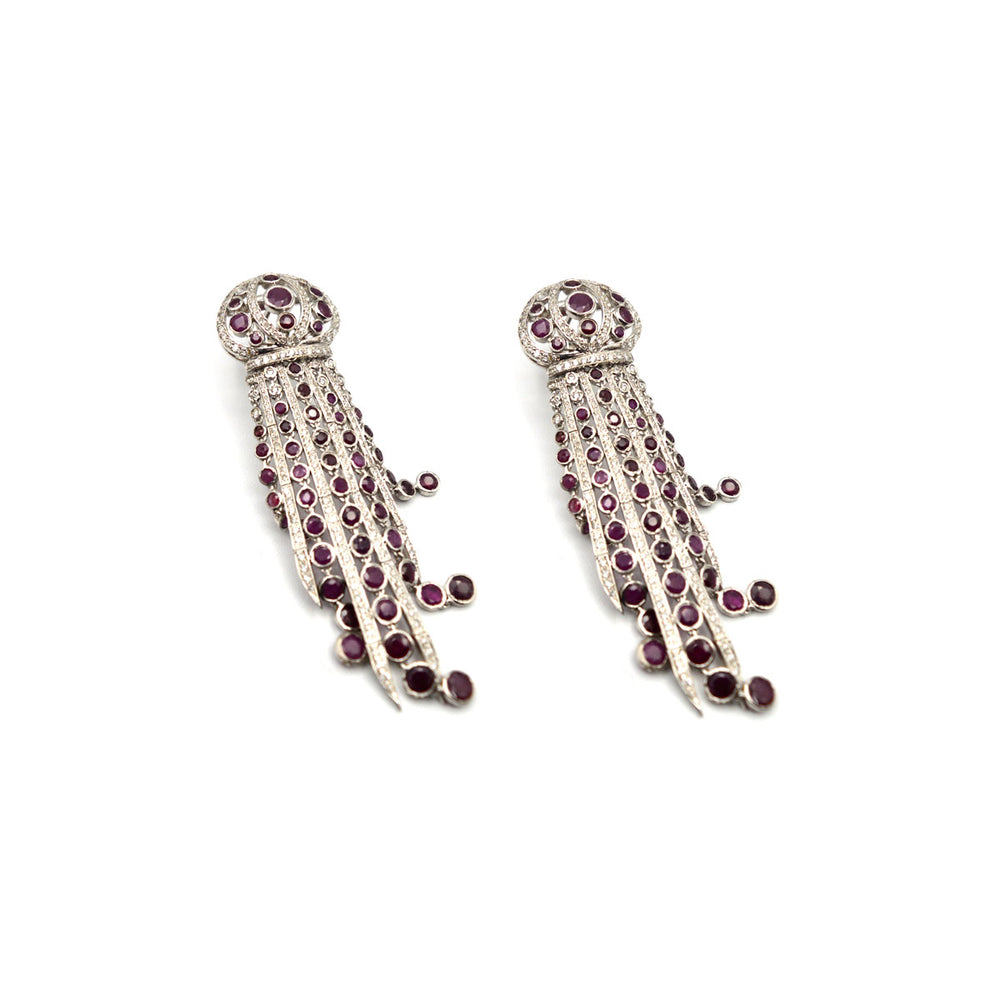 | A breathtaking piece that emits a compelling blend of passion and sophistication, the Ruby Diamond Earring is a piece that takes your breath away. Ruby gemstones, known for their fiery red hues and said to represent love and life, are carefully combined with the brilliant brilliance of diamonds, resulting in a beautiful harmony of colour and glitter. It is a fantastic accessory for formal parties and special occasions since this earring is a monument to the timeless glamour that has existed for a long time. The Ruby Diamond Earring is a treasured addition to any jewellery collection because of its daring yet exquisite design, which ensures that it stands out as a statement of luxury and refinement at the same time. Your sense of style will be elevated with the opulent allure of this masterpiece that has been painstakingly constructed. |