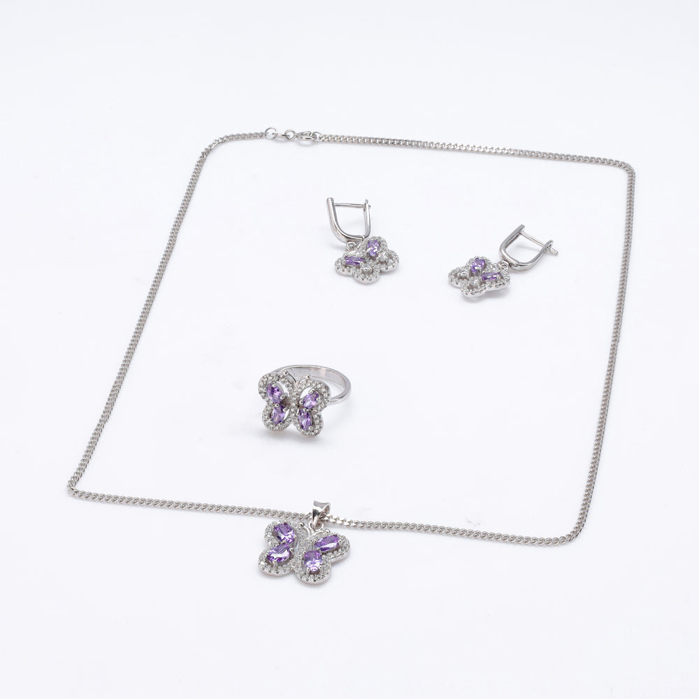 Discover the Amethyst Whispers Silver Locket Set - an enchanting blend of elegance and sentimentality. Crafted with precision, this set features a delicate silver locket adorned with sparkling zircon stones and a captivating amethyst gem. A timeless keepsake, perfect for treasuring cherished memories close to the heart.