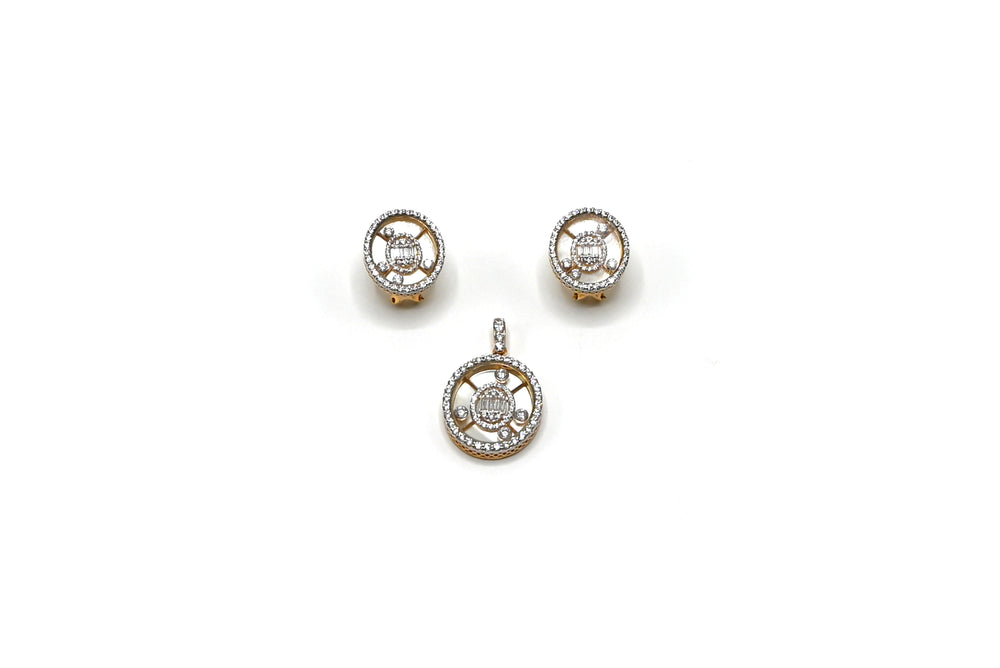 The Celestia Glimmer locket set shines with the dazzling sparkle of zircon stones set in luminous gold. Designed with meticulous attention to detail, it exudes elegance and sophistication. The matching earrings perfectly complement the locket, forming a refined ensemble that enhances your style for weddings, celebrations, or intimate gatherings. A timeless expression of beauty and grace.