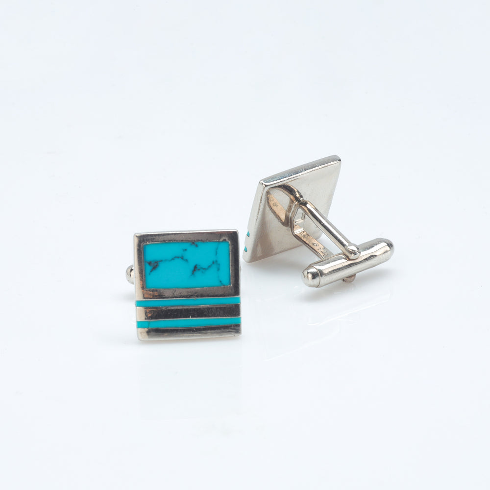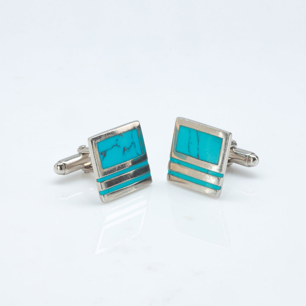 Presenting the Azure Elegance Cufflinks - a sophisticated touch of style. Crafted in silver, these cufflinks feature mesmerising turquoise stones, exuding a serene and elegant charm. A stunning accessory that adds a pop of refreshing allure to any man's attire, perfect for elevating his look with timeless elegance.