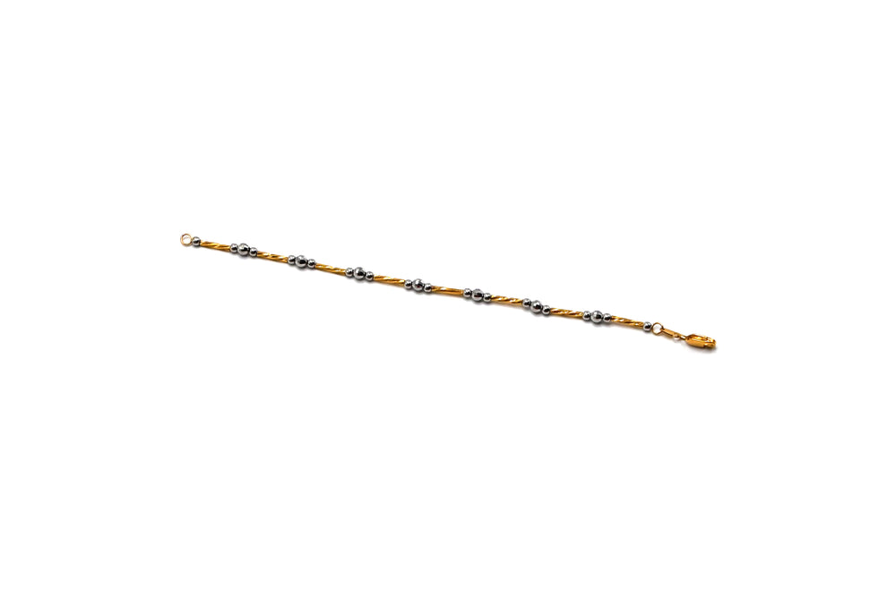 This delicate bracelet features a charming twist chain adorned with evenly spaced dark beads, perfect for subtle everyday elegance.