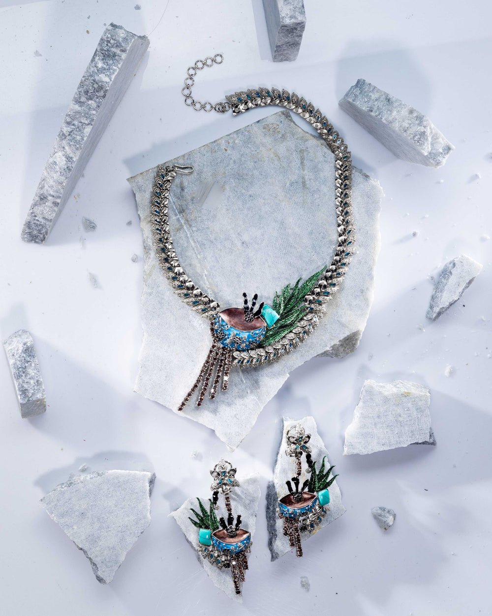 The Crimson Desire jewelry set features the captivating depth of ruby stones, creating a bold and elegant design that exudes passion and timeless beauty.