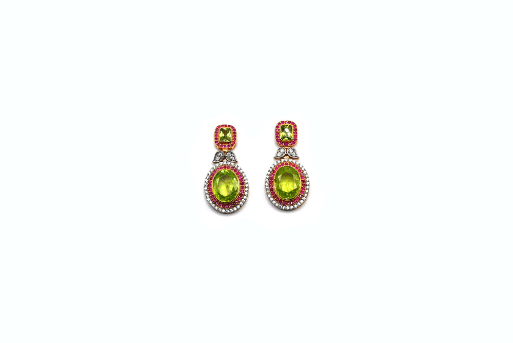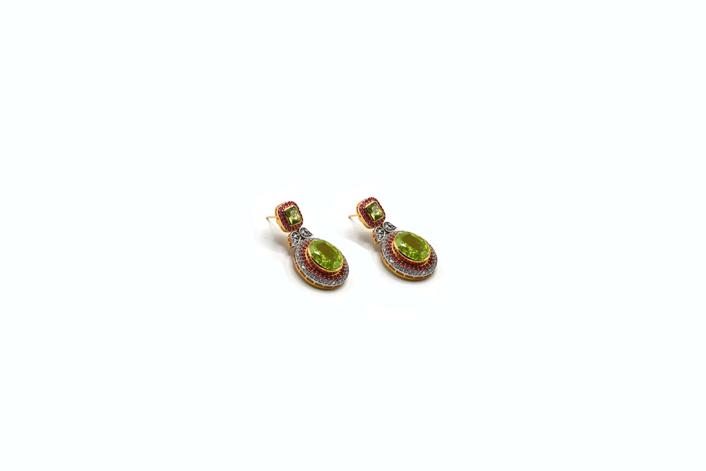 Aurora Gleam is a striking silver design featuring the vibrant combination of peridot, coral, and sparkling zircon. The bright green of peridot, the warm tones of coral, and the shimmer of zircon create a harmonious and eye-catching contrast, all set on a polished silver base.