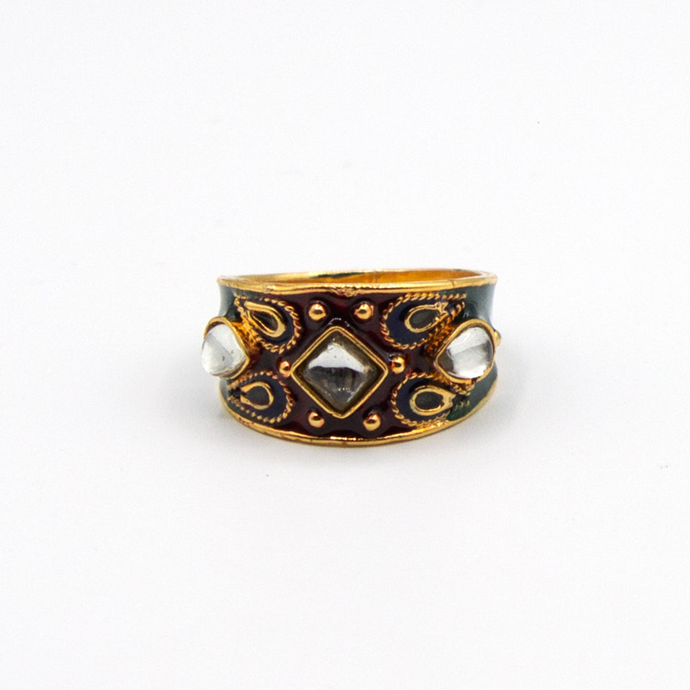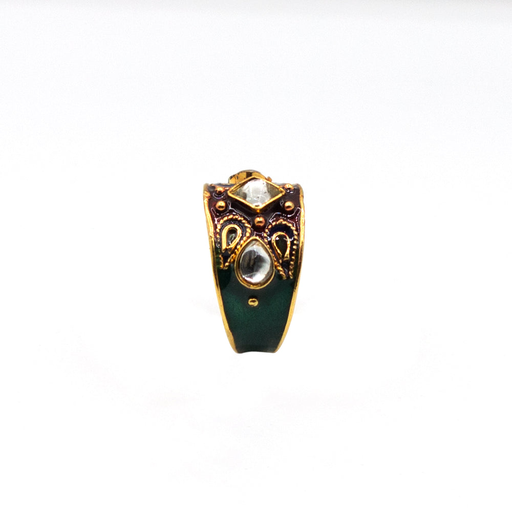 The Divine Silver Ring exudes an aura of ageless sophistication and spirituality thanks to the dazzling Kundan stone that is bezel-set in sterling silver. The delicate design of this gorgeous piece conveys a message of inner tranquillity and enlightenment, lending a touch of divine charm to whichever ensemble you choose to wear it with.