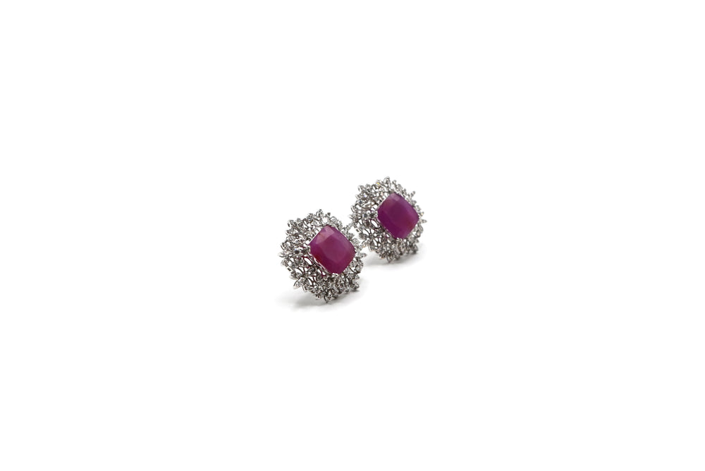 Bold ruby centerpieces encircled by dazzling diamonds, perfect for a regal statement