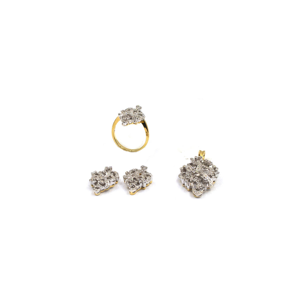 | Combines an elegant ring with matching earrings, both featuring a dazzling array of stones that create a graceful and refined look. This set’s sophisticated sparkle and timeless style make it an ideal accessory for enhancing any outfit. |