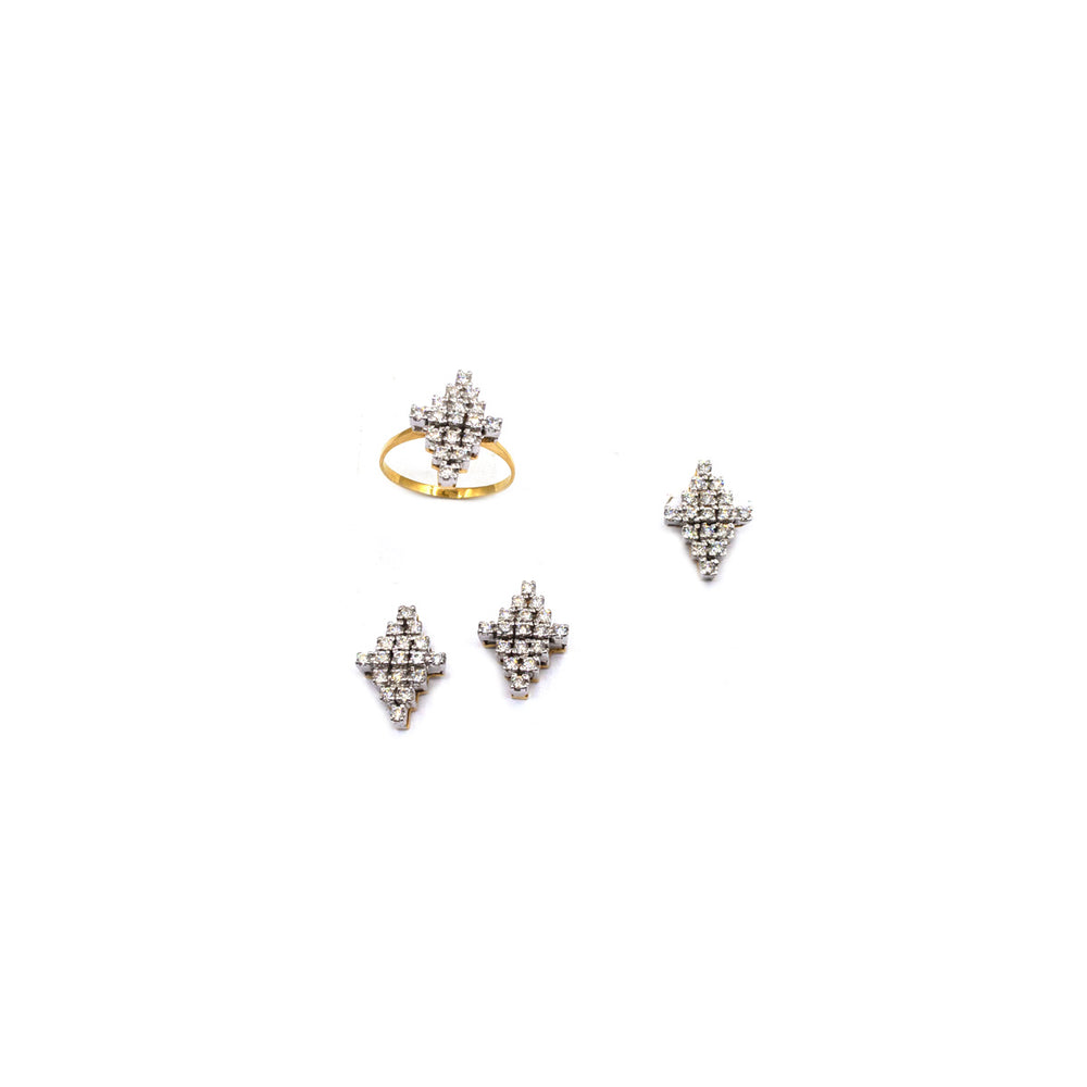 | Showcases a harmonious blend of sparkling stones in both the ring and earrings, creating a cohesive and luxurious look. The elegant design and radiant shine of this set make it a versatile choice for both everyday wear and formal events. |