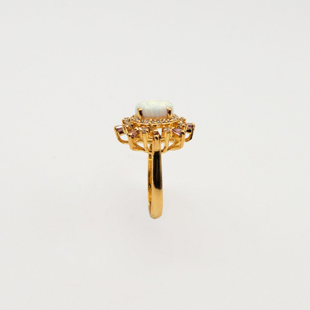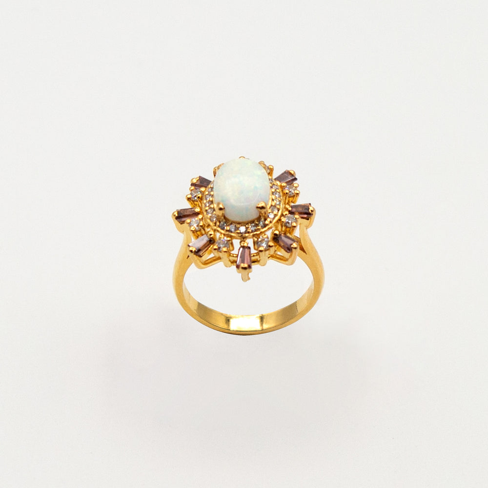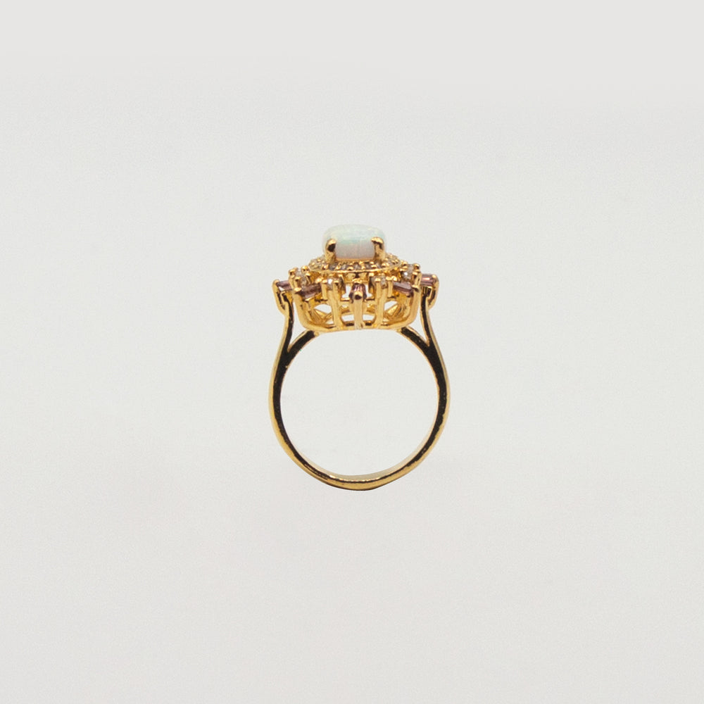 An appealing opal stone is encased in sterling silver to create the mesmerising centrepiece of the Opal Silver Ring, a priceless treasure. The dazzling tones and one-of-a-kind colour play lend an air of sophistication and mystique to the item. This ring is a classic statement item that will never go out of style and elevate your look with its captivating and mystical charm.