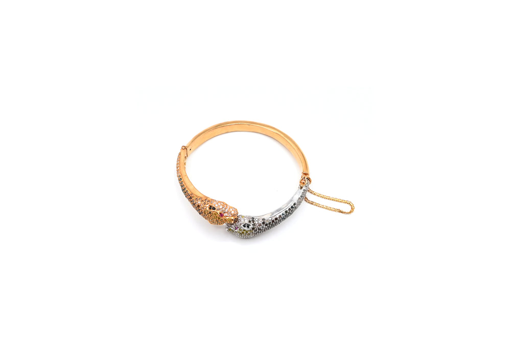 A Stunning studded bangles designed with twin panther heads, symbolizing strength and luxury.