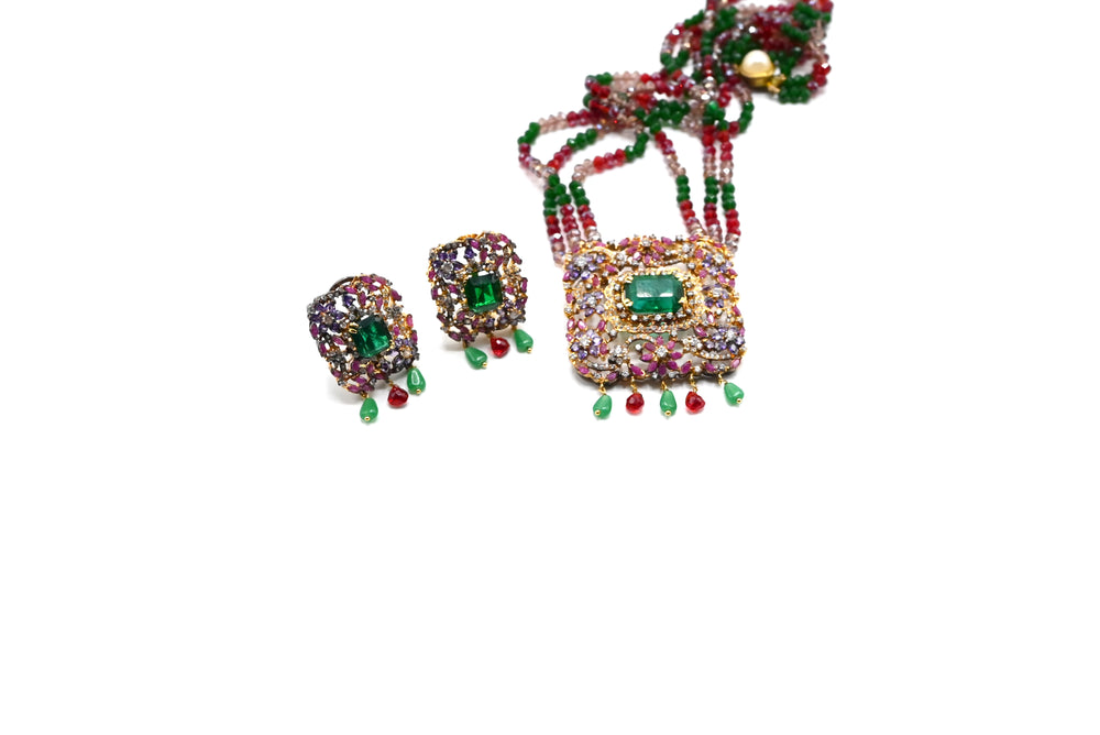 The "Regalia" set combines the rich hues of ruby, emerald, zircon, and amethyst, creating a luxurious blend of colors and brilliance.