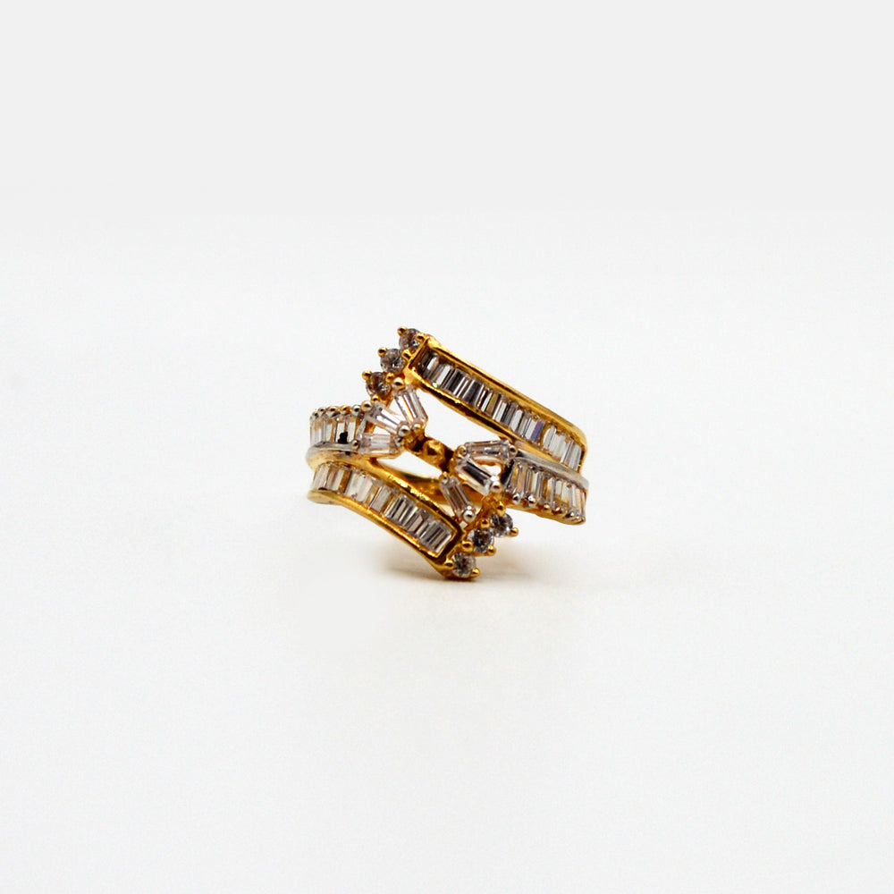 The Ribbon Gold Ring expresses elegance and class. This pure gold ribbon ring symbolises life's exquisite beauty. Elegantly set zircon stones give it a radiant shine, reflecting the wearer's taste and flair. Fluid lines and timeless appeal define the Ribbon Gold Ring. The precision-set zircon stones lend power to the ring's attractiveness without overriding its delicate nature. Whether worn as a mark of grace or complimenting a sophisticated outfit, this ring exudes sophistication, confidence, and excellent fashion sense. The Ribbon Gold Ring is a must-have for every jewellery collection due to its sparkling beauty and flawless craftsmanship. It conveys the wearer's refined taste and elegance, giving a lasting impression. The Ribbon Gold Ring reflects the wearer's polished style and adds sparkle to every gesture.