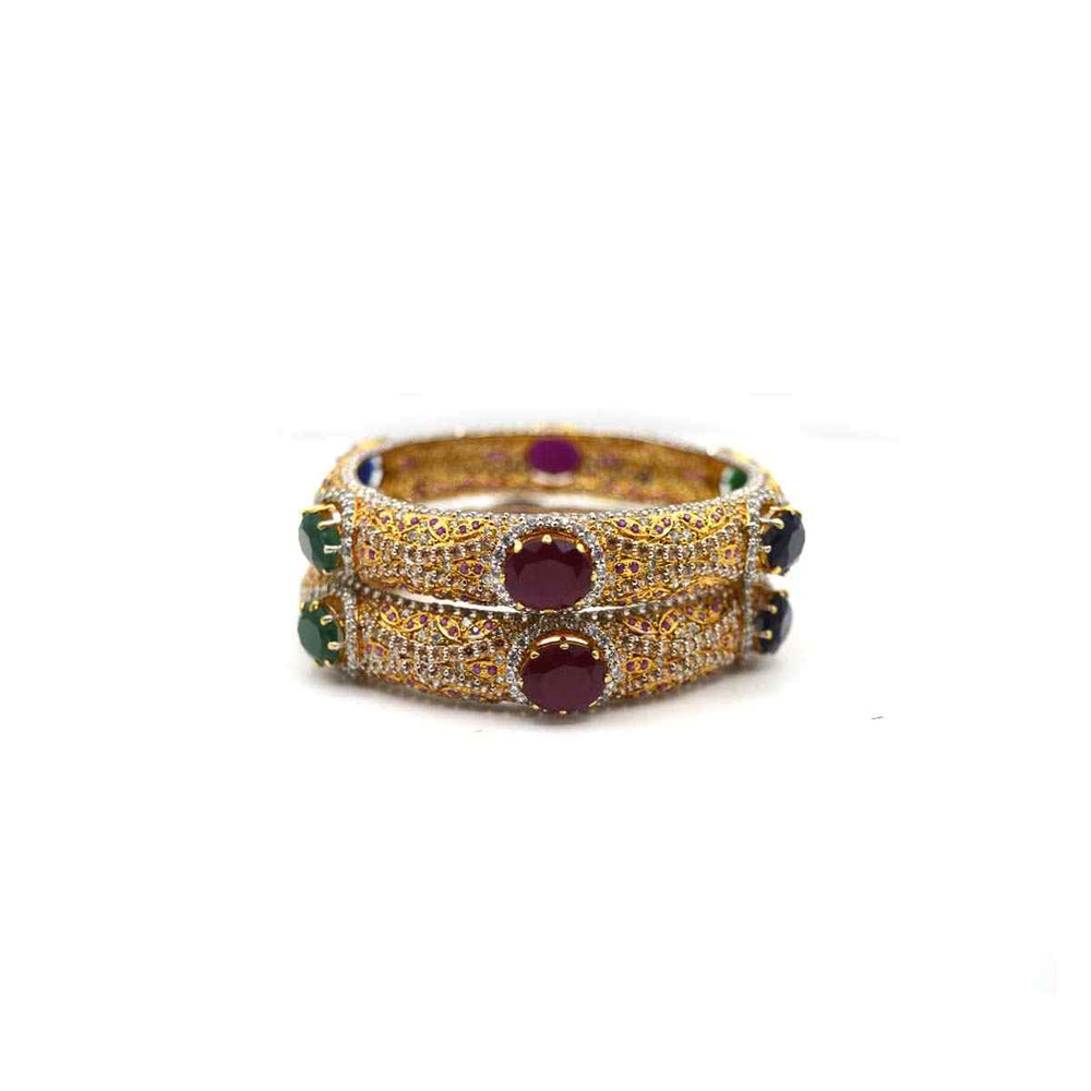 The Sapphire Silver Kara embodies beauty and craftsmanship. With its ruby, sapphire, and emerald stones, this kara blends vibrant colours and sterling silver brilliance. Ruby, sapphire, and emerald colours are carefully matched to create a beautiful symphony that draws attention. The kara's elaborate design and perfection make it a wonderful accent for formal and casual settings. The Sapphire Silver Kara offers elegance and timeless beauty to every outfit, whether worn alone or with other silver accessories. This stunning item blends jewels and sterling metal to elevate your style.
