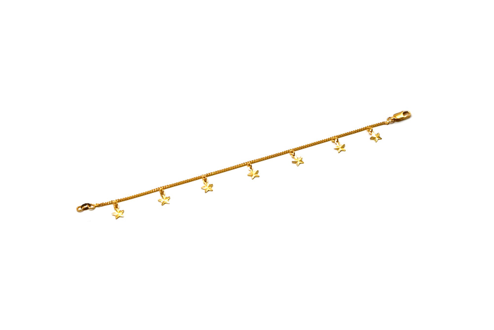 This enchanting bracelet features delicate star charms dangling along a fine chain, adding a whimsical twinkle to your wrist