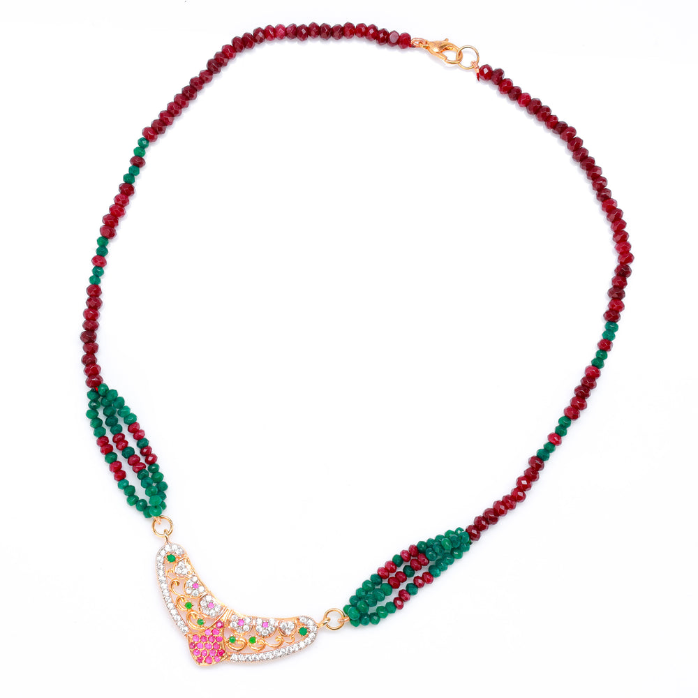 Introducing the Tricolour Treasures Silver Set, a stunning collection featuring zircon, ruby, and emerald gemstones in lustrous silver. Necklace and earrings exude timeless elegance for any occasion.