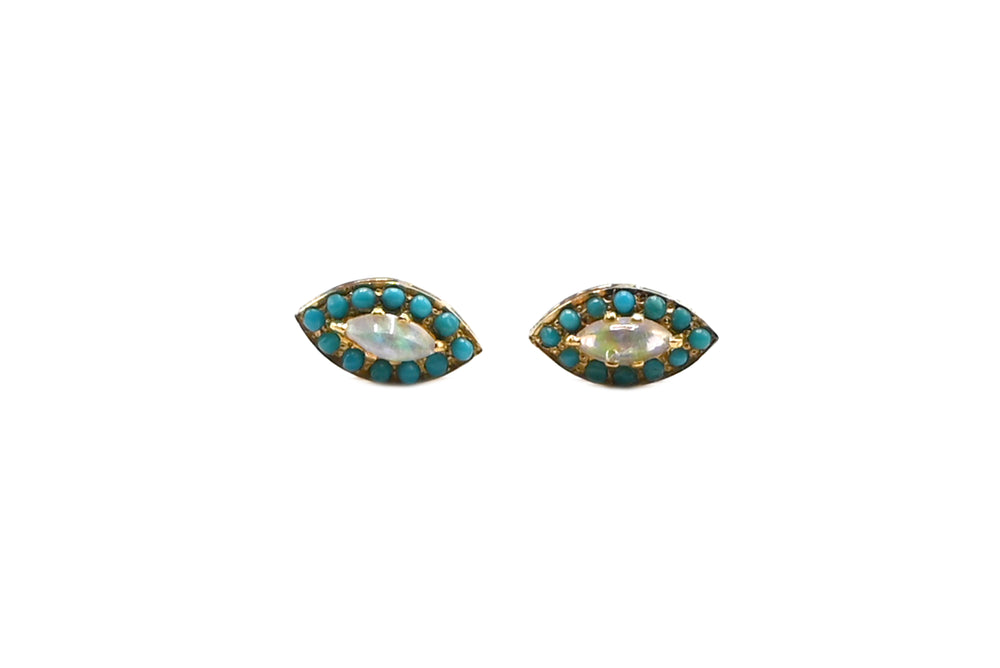These captivating studs, featuring marquise opals framed by vibrant turquoise, are destined to be admired.